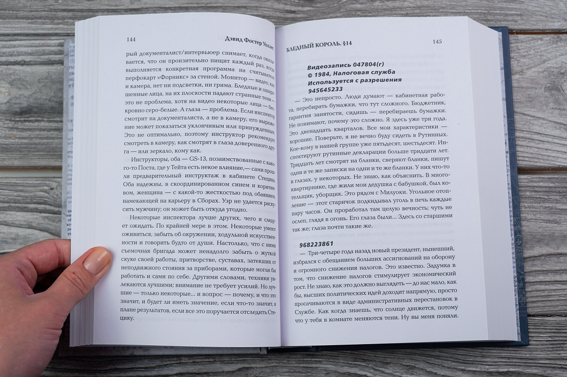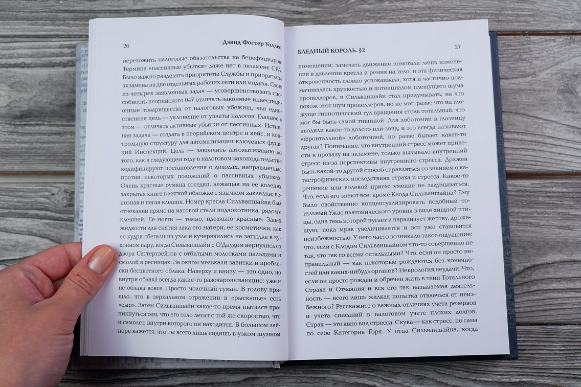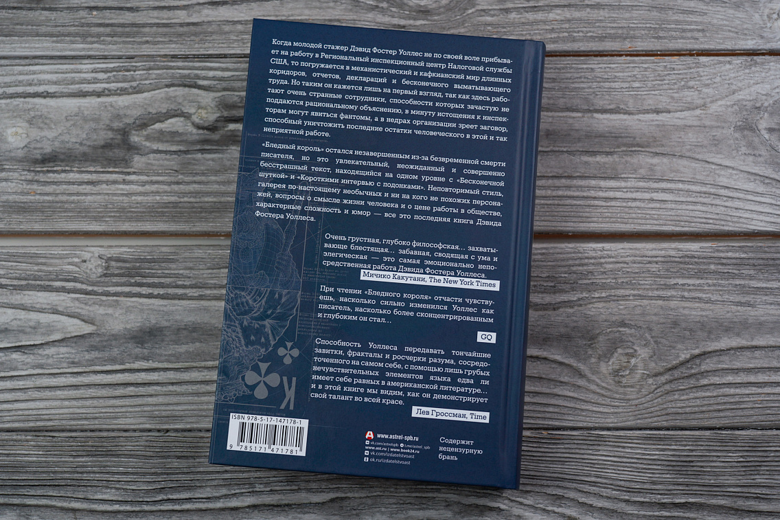 "Бледный король" остался незавершенным из-за безвременной смерти писателя, но это увлекательный, неожиданный и совершенно бесстрашный текст, находящийся на одном уровне с "Бесконечной шуткой" и "Короткими интервью с подонками". Неповторимый стиль, галерея по-настоящему необычных и ни на кого не похожих персонажей, вопросы о смысле жизни человека и о цене работы в обществе, характерные сложность и юмор – все это последняя книга Дэвида Фостера Уоллеса.