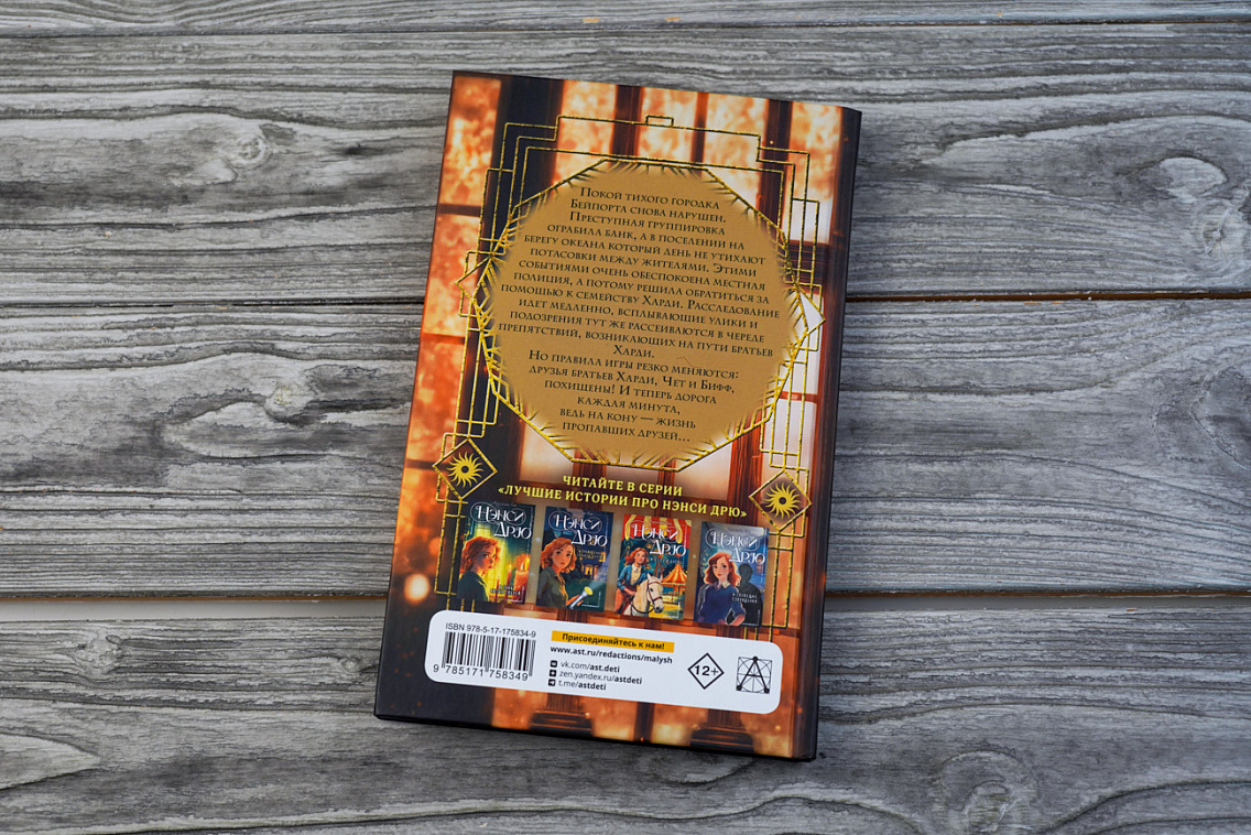 Детективные истории про братьев Харди впервые появились в США в 20-х годах ХХ века и стали громким литературным событием. Захватывающий сюжет, где переплетаются загадки и расследования, опасность и риск, уже с первых страниц овладевает вниманием читателя и держит в напряжении до конца книги. По мотивам книг про братьев Харди были сняты сериалы, выпущены компьютерные игры. На сегодняшний день у этих детективных историй есть поклонники по всему миру. В городке Бейпорт снова неспокойно. На этот раз братьям Харди придется расследовать сразу три дела: ограбление банка, потасовки в Трущобах на берегу океана и… похищение друзей братьев Харди, Чета и Биффа. Кажется, что расследование сразу трех дел зашло в тупик, ведь улик достаточно, но собрать воедино картину преступлений практически невозможно. Время идет, а о Чете и Биффе никаких новостей. Удастся ли юным детективам выйти на след преступников и раскрыть тайну пропавших друзей? Для среднего школьного возраста.