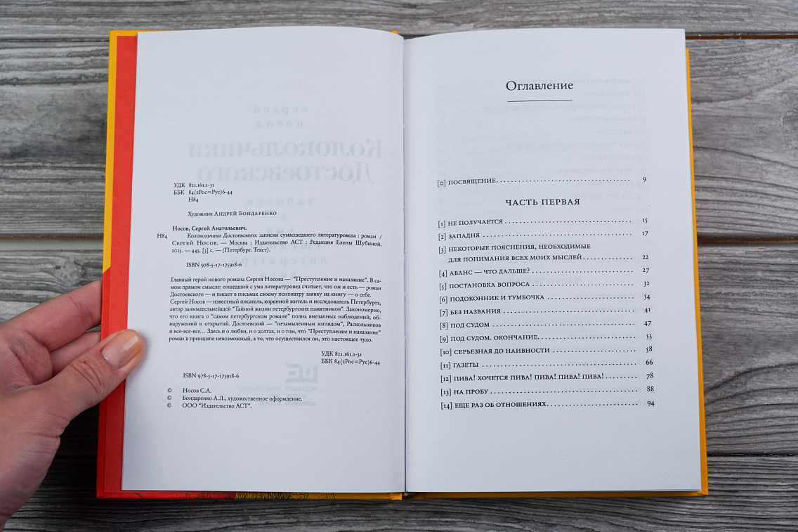 - В уникальной, жанровой форме Сергей Носов предлагает читателю авторское прочтение «Преступления и наказания» — результат многолетней работы, полный интереснейших предположений, полемики с литературоведами и всевозможных открытий.