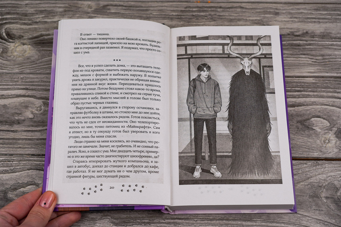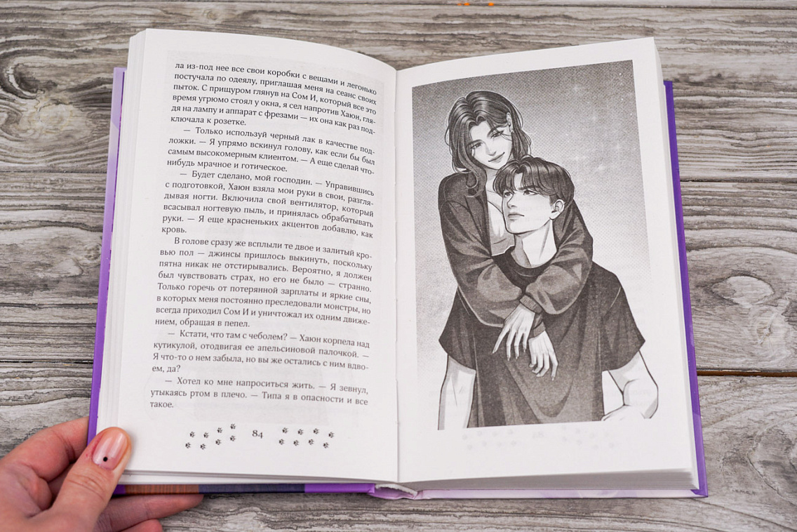 - Стильное оформление: обложка от Peachy, цветные форзацы и шесть черно-белых иллюстраций от lanawaay внутри.