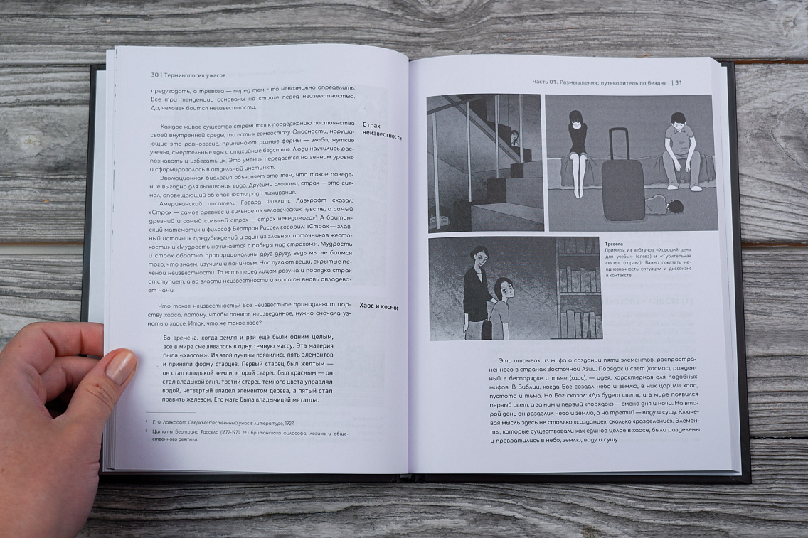 - Подробно раскрываются основные принципы, термины и приемы, применимые к жанру ужаса.