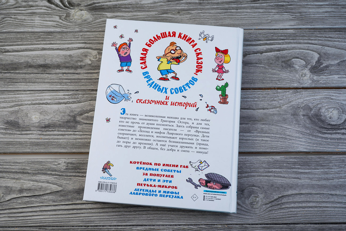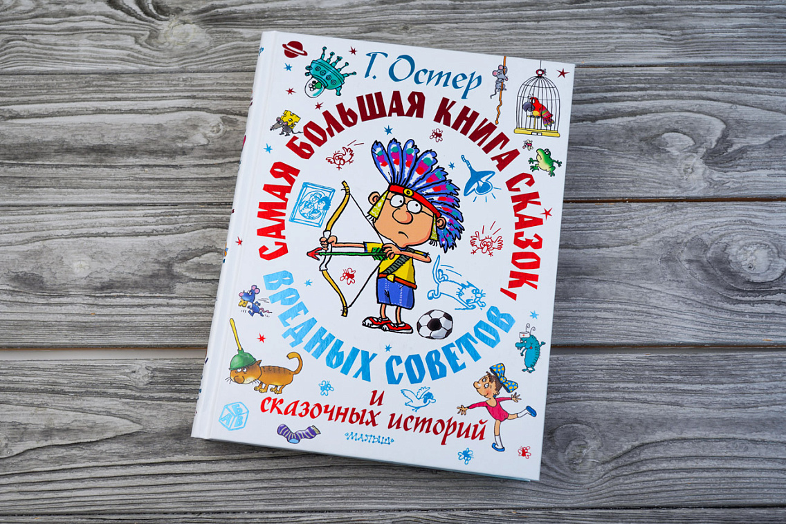 В книгу Г. Остера "Самая большая книга сказок, сказочных историй и вредных советов" вошли одни из самых известных произведений писателя: повесть "Петька-микроб" (рис. Е. Запесочной), сказки из цикла "38 попугаев" (рис. Е. Запесочной), по которому был снят одноимённый мультфильм, сказки из цикла про знаменитого котёнка по имени Гав и его друга щенка (рис. Б. Акулиничева, О. Боголюбовой, Т. Черкасовой), сказки "Большая-пребольшая" и "Домик-теремок" (рис. А. Халиловой), а так же озорные "Вредные советы", истории из книг "Дети и Эти" и истории из цикла "Легенды и мифы Лаврового переулка" с рисунками Н. Воронцова.