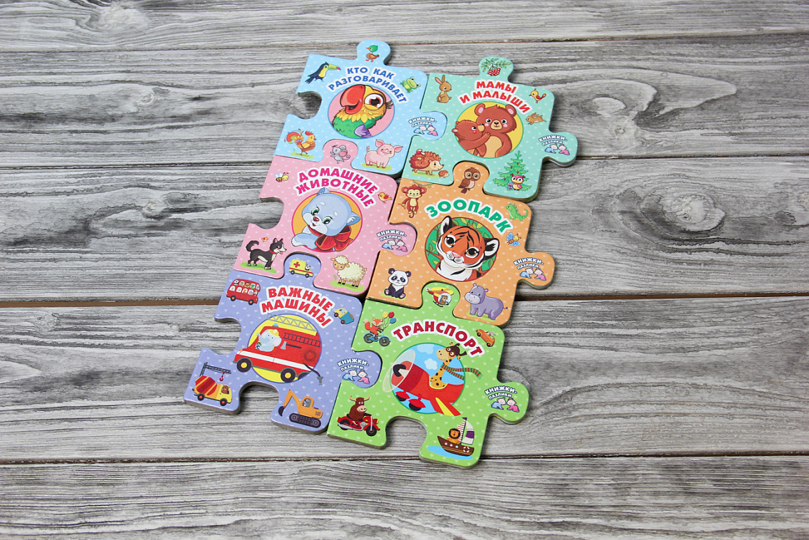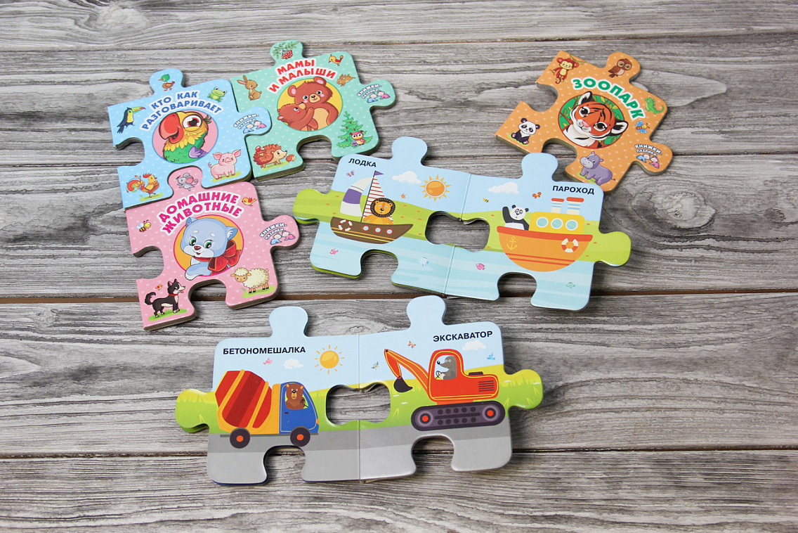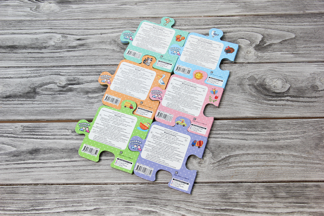 • Фигурная вырубка в виде пазла и яркие картинки.