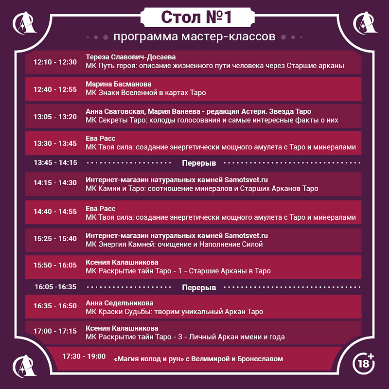 Мы ждём вас на наших мастер-классах 7 декабря с 12:00 до 20:00 — Пространство «Старт ХАБ», Москва, Берсеневская наб., 6, стр. 3, (этаж 4). Зона «Астери. Звезда Таро» находится в Каминном зале — от входа прямо до упора.