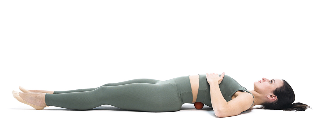 Данное упражнение обеспечивает миофасциальный релиз прямой мышцы живота для облегчения боли в пояснице.